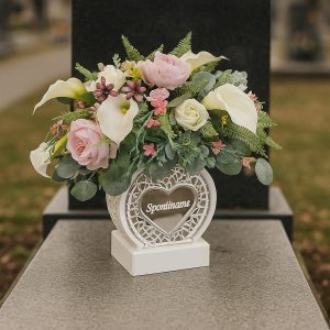 0 out of 5(0)Elegantný aranžmán na hrob v drevenom zaťaženom srdci.
