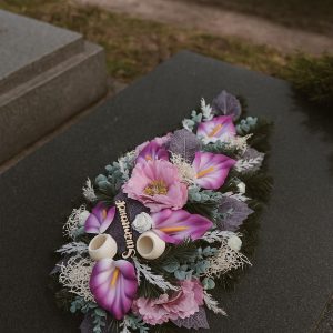Dekorácia je tvorená z kvalitných umelých kvetov a zelene.