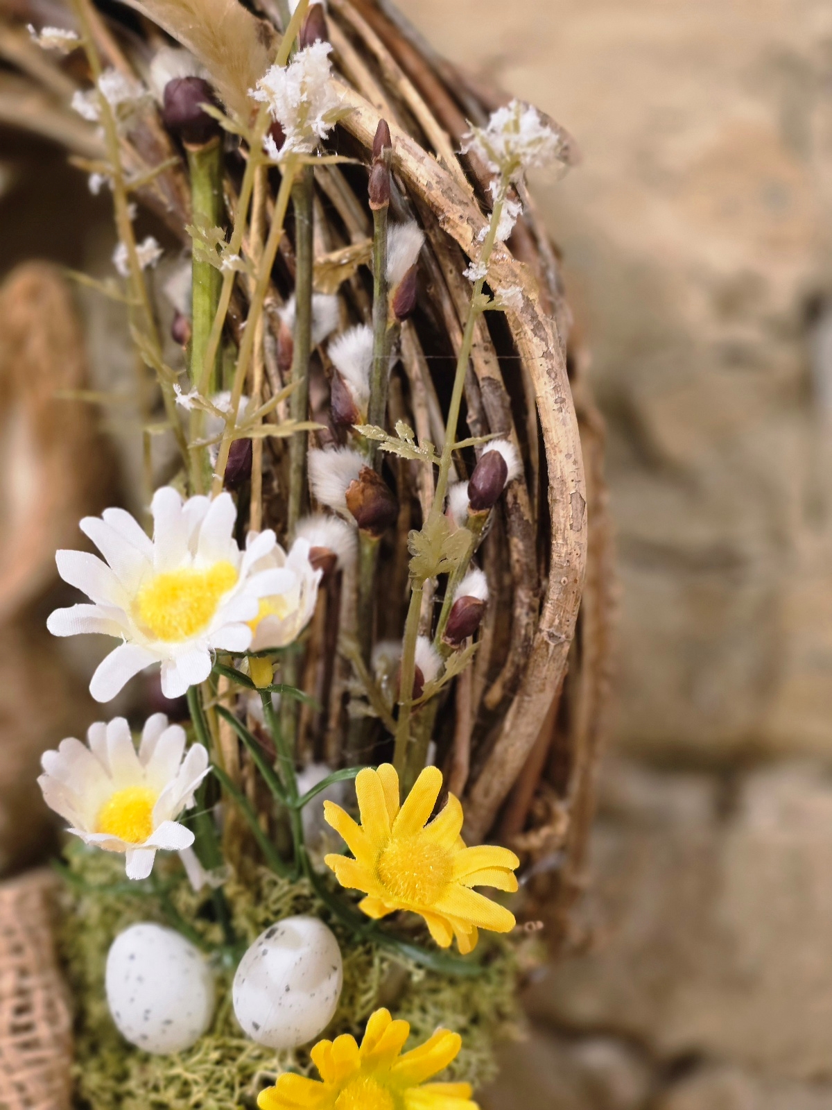 ✔ zdobený jarnými kvetmi a veľkonočnými vajíčkami