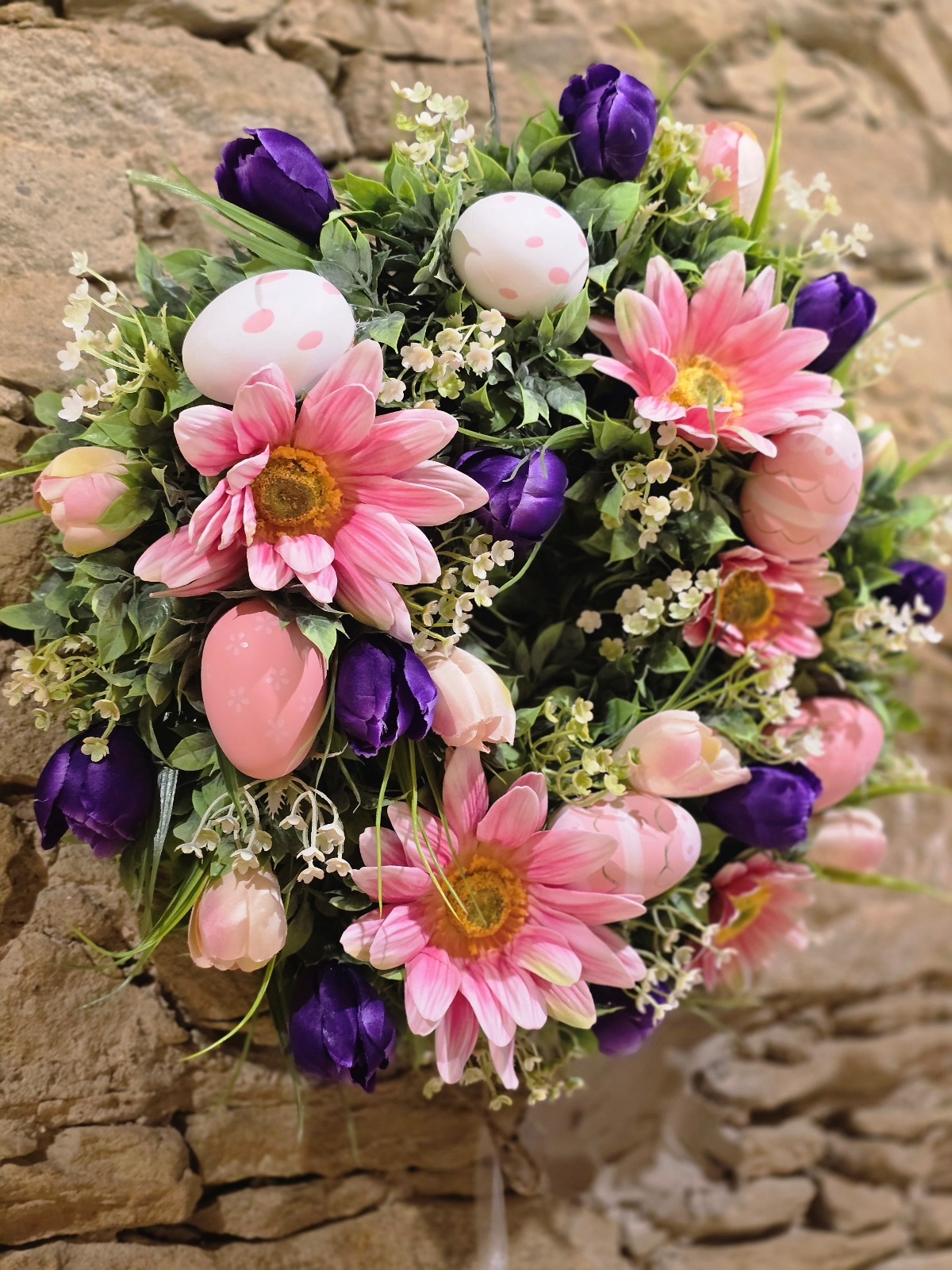 ✔ krásny veľkonočný veniec s kvetmi a vajíčkami