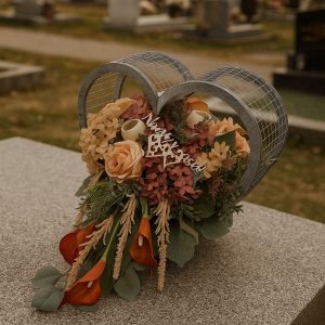 0 out of 5(0)Elegantný aranžmán na hrob v drevenom zaťaženom srdci.