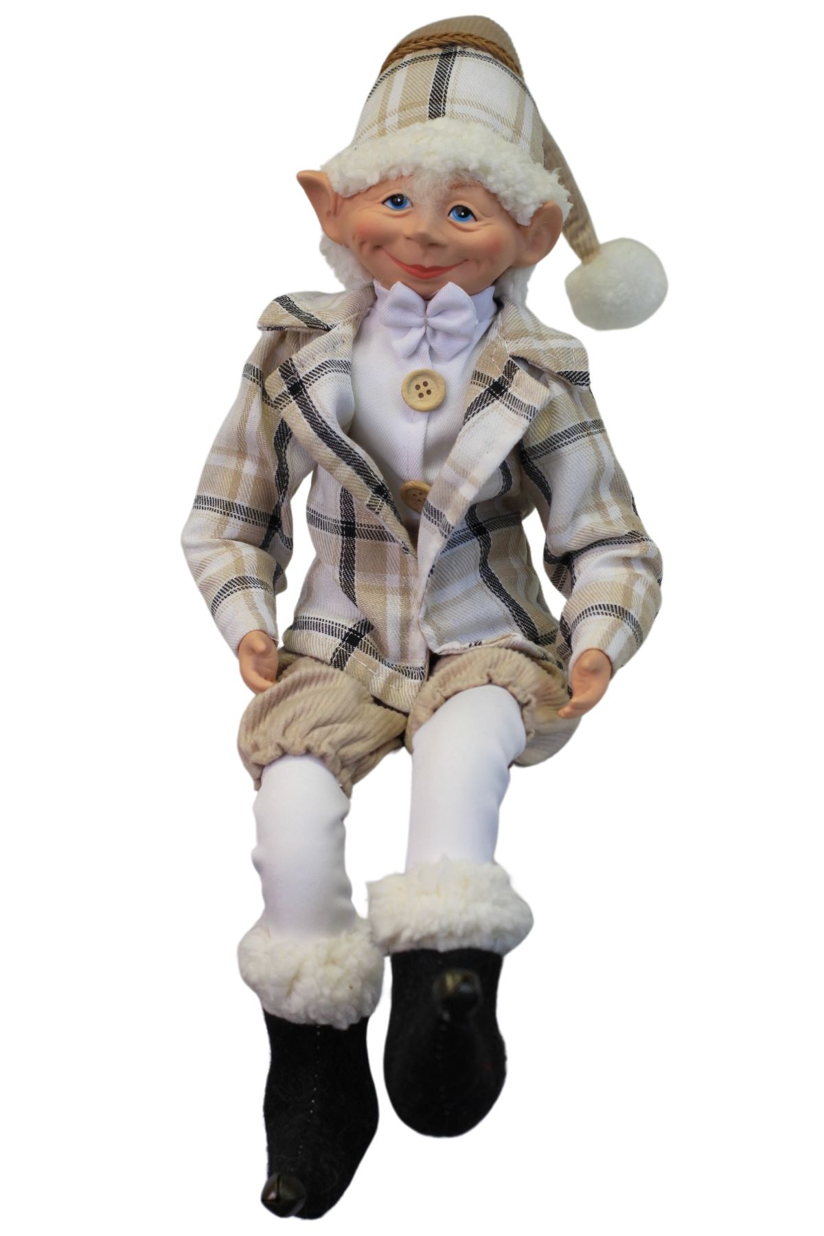 Tento vianočný škriatok v bielom prinesie do vášho domova hrejivú atmosféru zimných sviatkov. Je oblečený do krasneho karovaného saka, nohavíc s huňatým lemom a čiapky s brmbolcom. Vďaka detailnému spracovaniu a jemným farbám pôsobí elegantne, no zároveň hravo. Je ohybný, s drôtom vo vnútri, preto sa dá prispôsobiť polohe akú práve potrebujete. Škriatok je mimoriadne obľúbená vianočná dekorácia, je vhodný aj ako darček