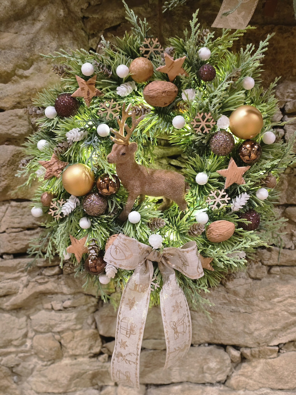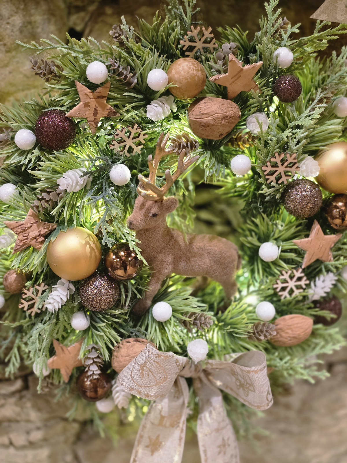 Vianočný čečinový veniec je ikonickou dekoráciou, ktorá okamžite navodí sviatočnú atmosféru vo vašej domácnosti. Tento elegantný veniec na Vianoce je vyrobený z hustej, bohato zdobenej umelej čečiny, ktorá dokonale imituje vzhľad prírodného ihličia – bez opadávania a starostí. Je ideálny na zavesenie na dvere, stenu, okno.
